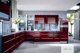 The kitchen elements with a mix of designs and maroon accents look luxurious from all angles of the eye.